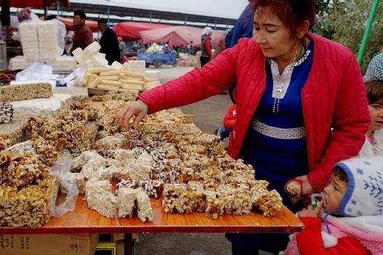 据老板介绍,新疆切糕的制作过程非常讲究。首先,选用上等糯米粉,经过反复揉搓,使其变得柔软有弹性。将糯米粉铺在特制的模具上,加入各种坚果、果脯等食材,最后用木槌敲打成型。整个过程,需要耐心和技巧,才能制作出美味的切糕。